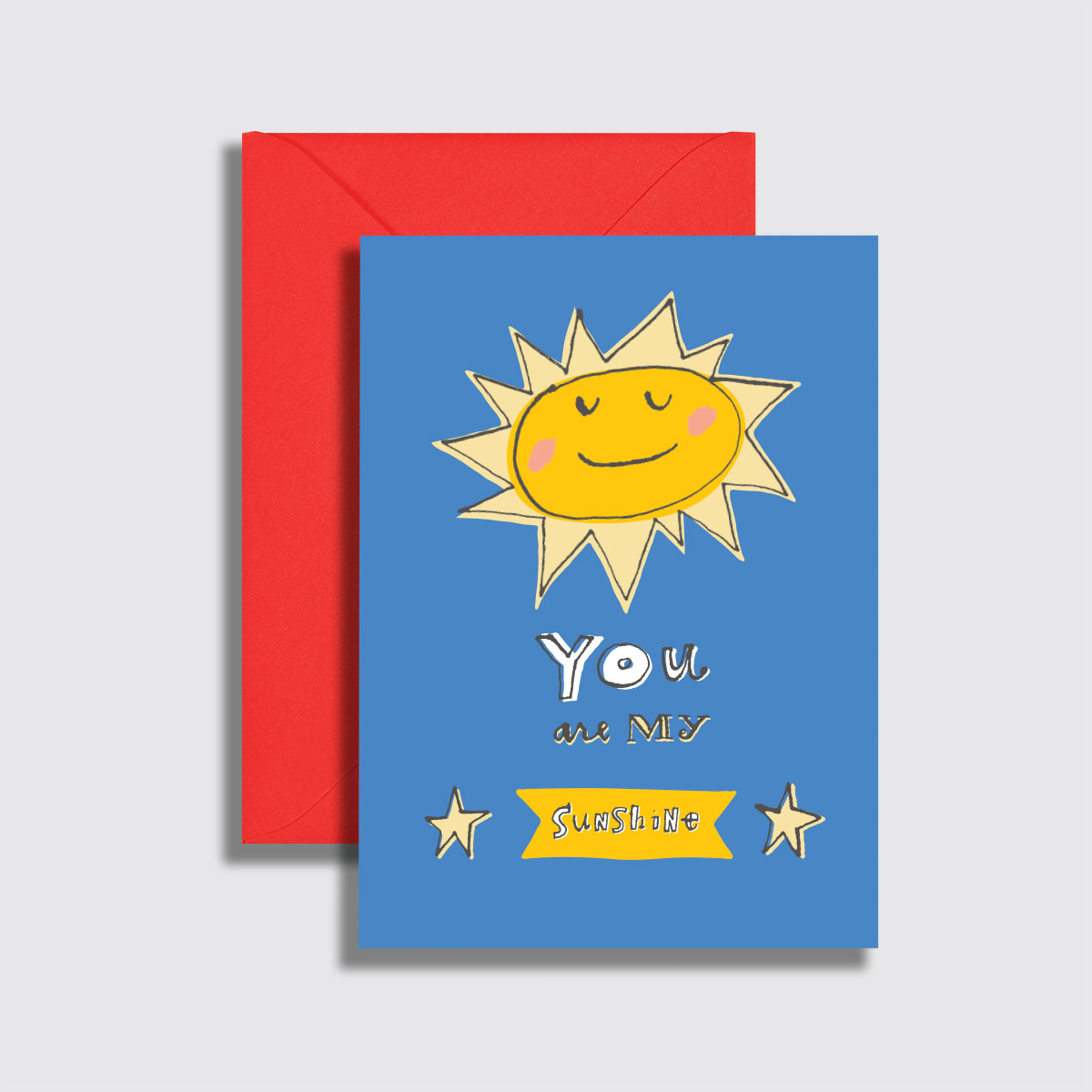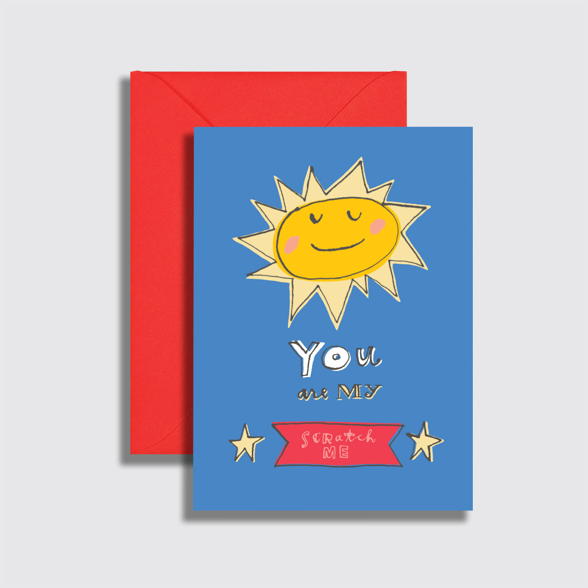 Scratch Off: Sunshine Interior Message: You make me happy when skies are grey (or blue) Size: 4.5″ x 6.25″ Paper: Premium white greeting card stock Envelope: Chili Pepper