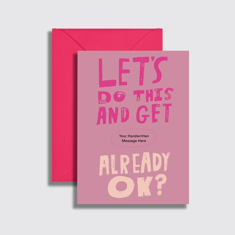 Scratch Off: sticker (add your own message) Interior Message: Blank Size: 4.5″ x 6.25″ Paper: Premium white greeting card stock Envelope: Lipstick pink